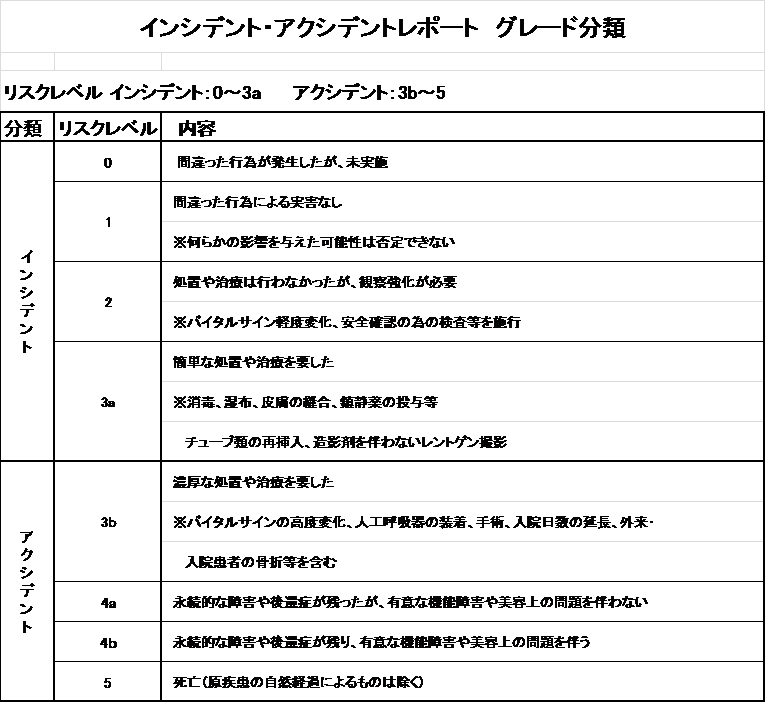 - ① インシデント・アクシデント報告による原因分析及び事故防止策、業務改善方策等の検討に関すること。